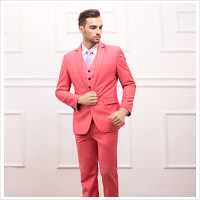 Dark Navy&Red Polyester Slim Fit Three-Piece Suit