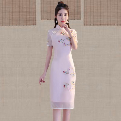 Medium and long qipao summer 2018 new girl China style modified young version of fresh Chinese daily dress