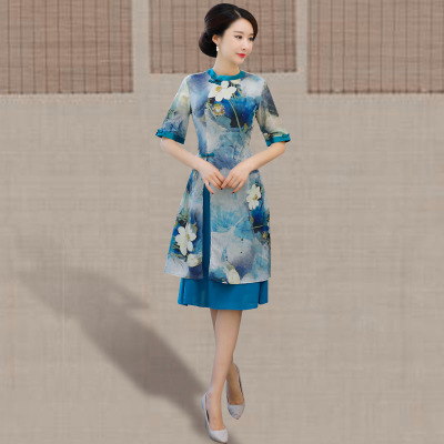 Qipao medium length summer 2018 new female retro Chinese style trim slim daily improvement qipao dress