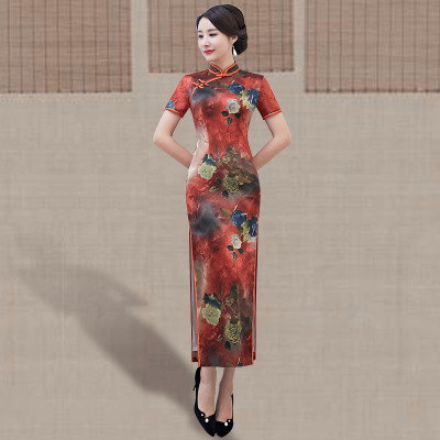 Yijia red cheongsam 2018 new female single-layer retro elegant catwalk Chinese style cheongsam dress long section