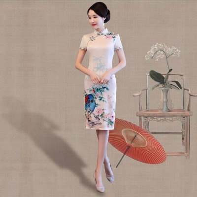 Medium and long qipao summer 2018 new Chinese style women s national style modest and elegant slim show dress 258.95 446.90Medium and long qipao summer 2018 new Chinese style women s national style mo